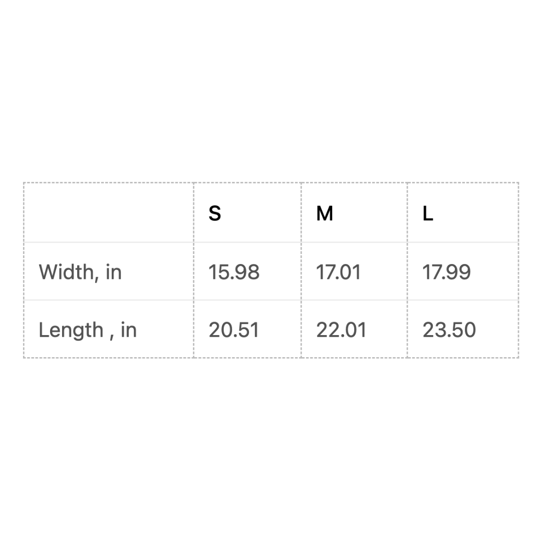 | Width, in | 15.98 | 17.01 | 17.99 |
