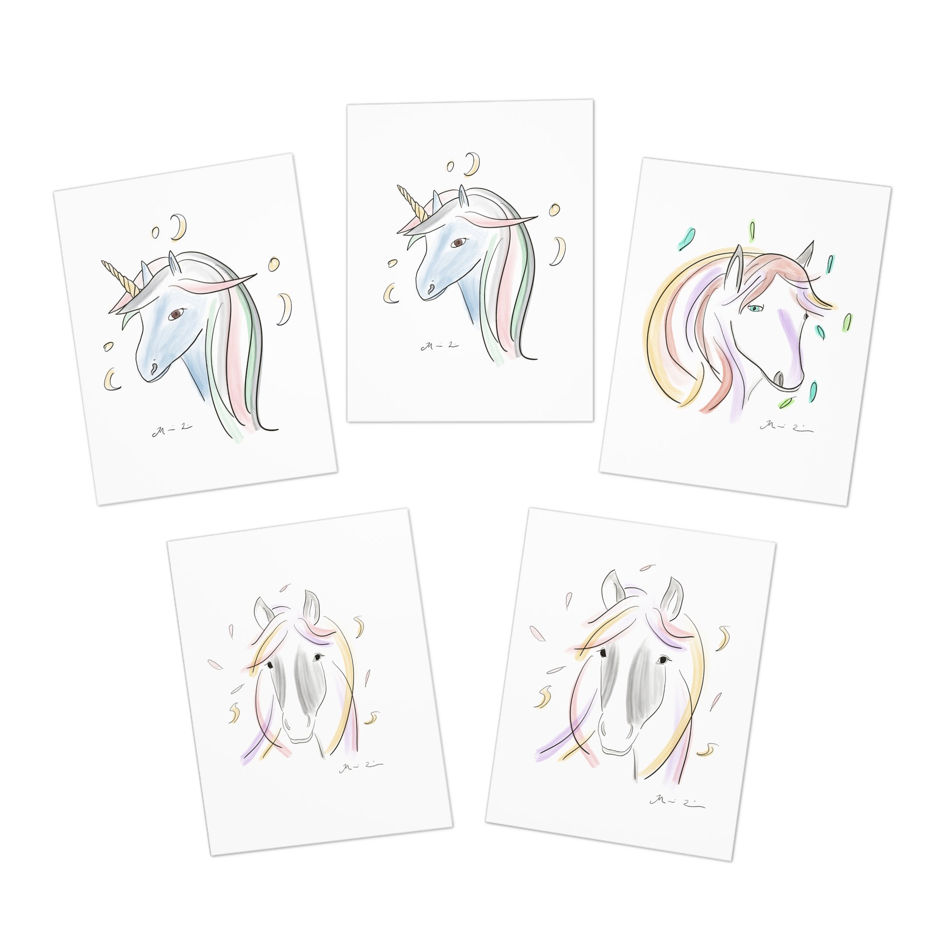 Whimsical Horse and Unicorn Greeting Cards - Variety Set of 5